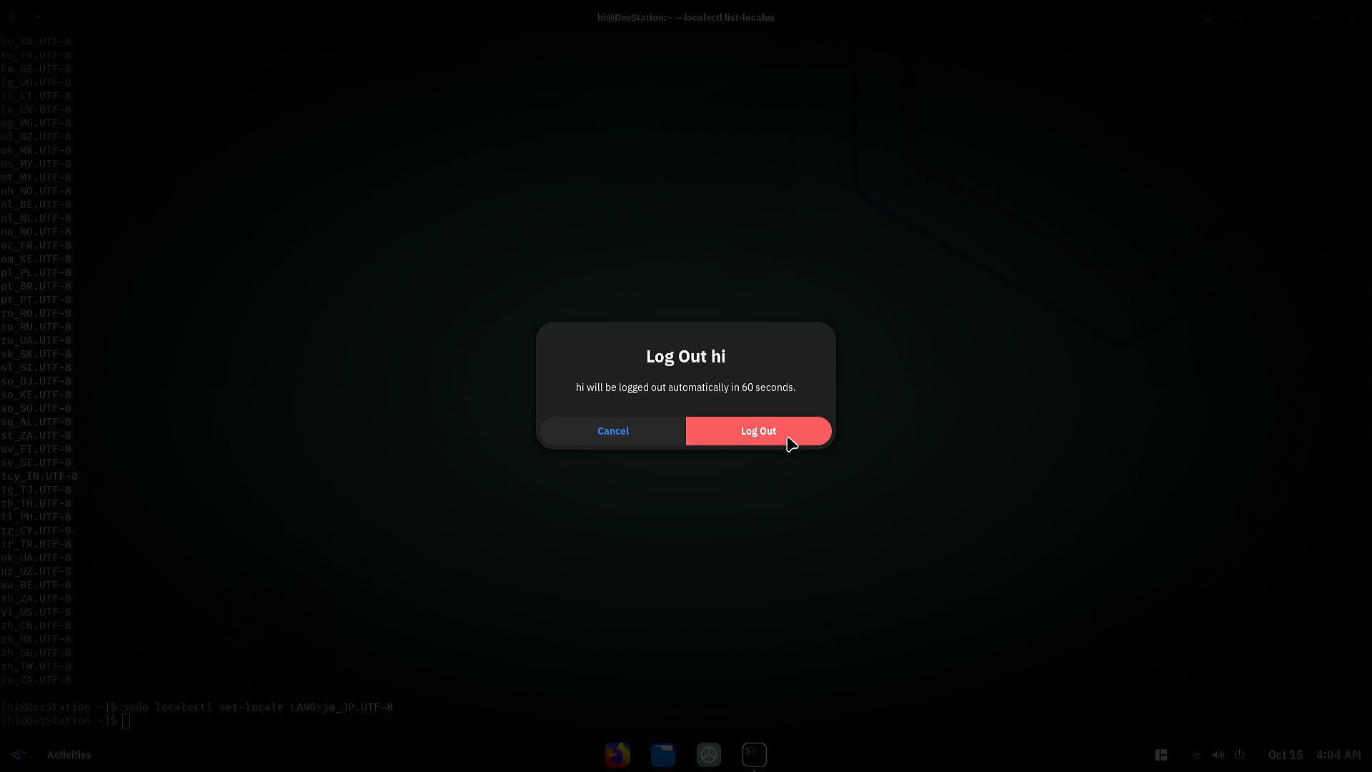 sudo localectl set-locale LANG=ja_JP.UTF-8