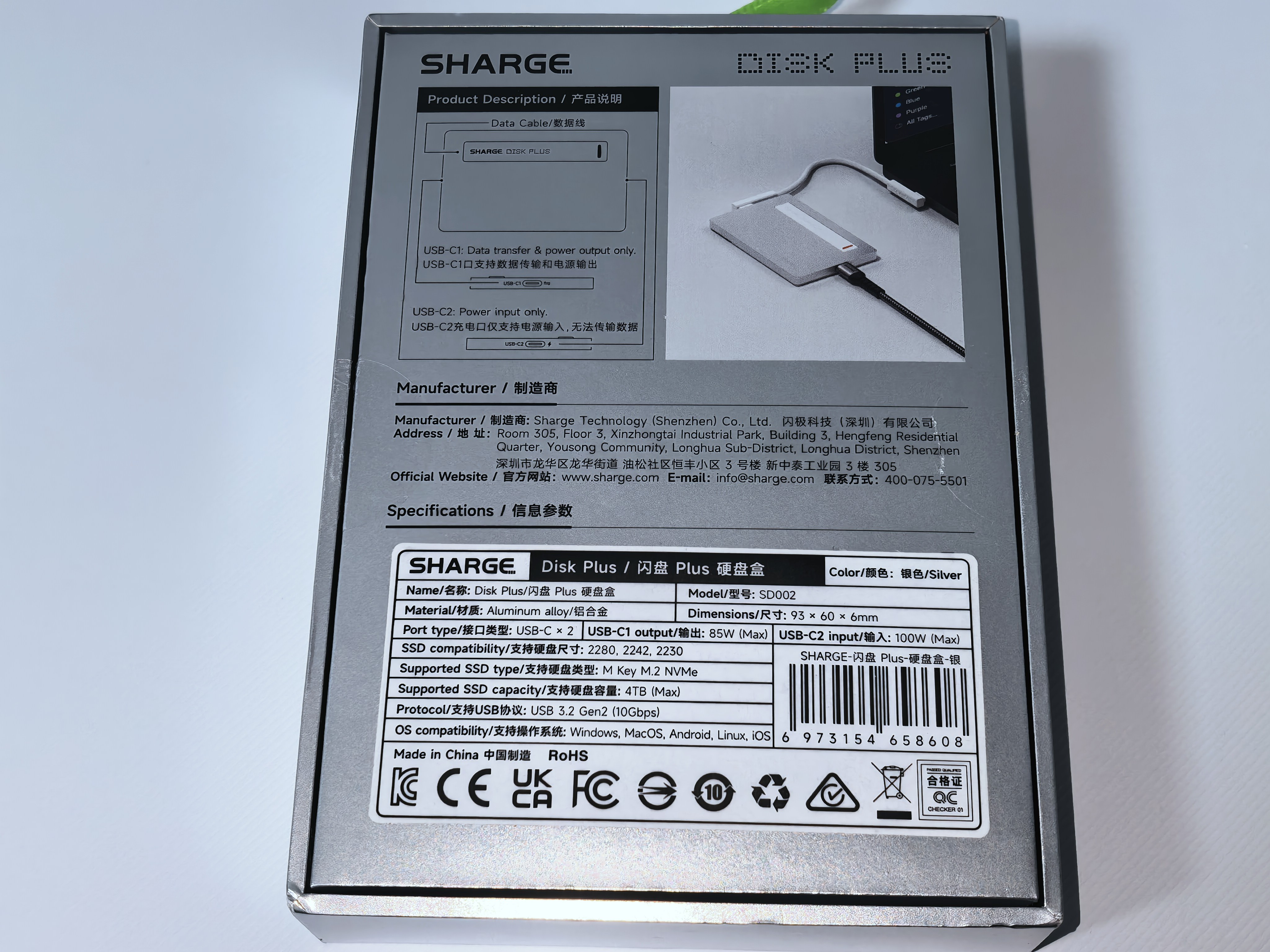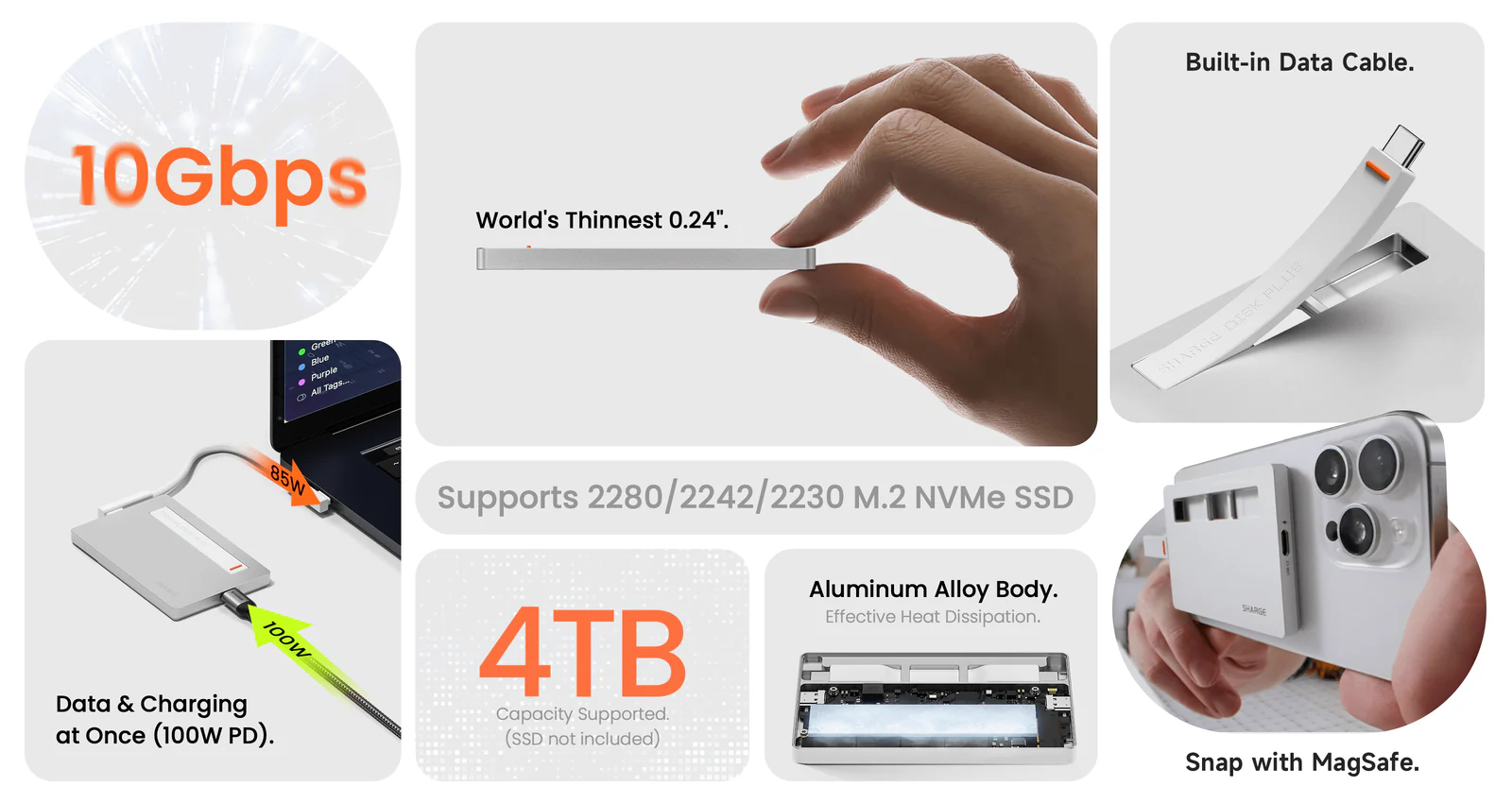 SHARGE Disk Plusは、クレジットカード大の薄型筐体にM.2 NVMe SSDを搭載して、スマホやUMPCやカメラに繋いで使っちゃおう、というような製品です。