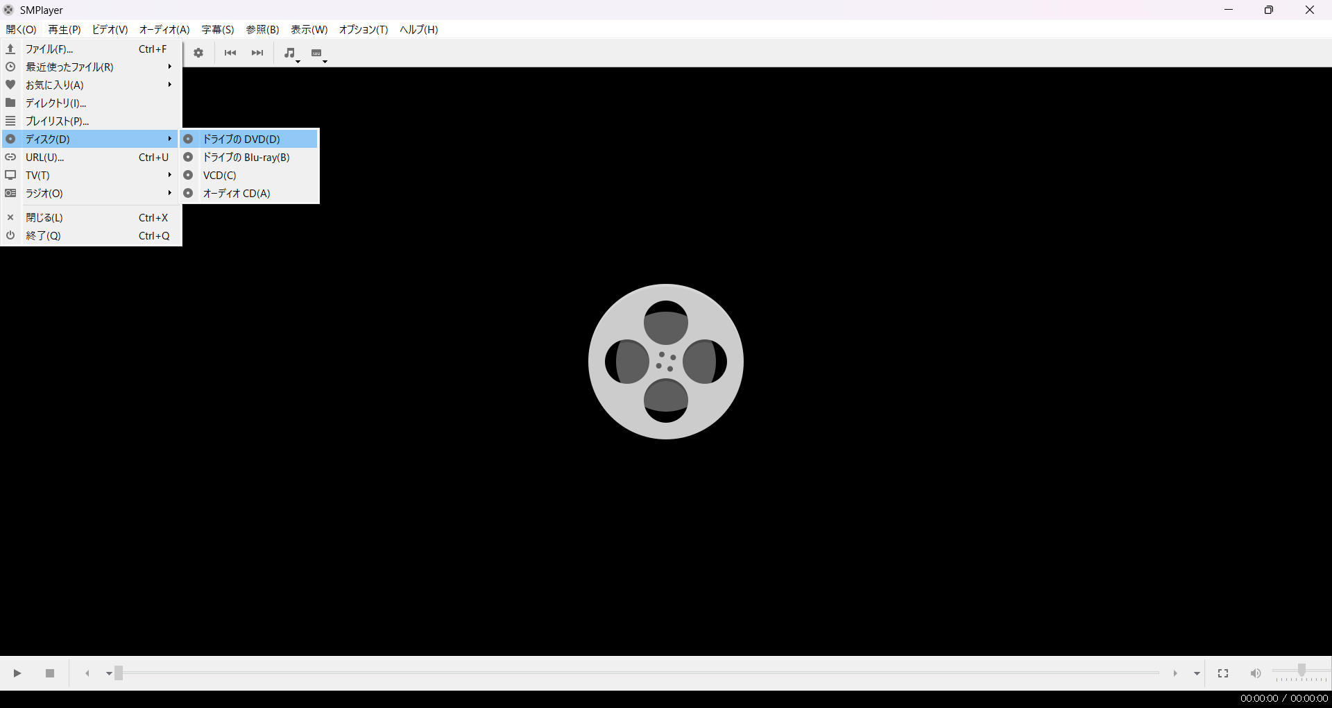DVDの場合は、先に場所を設定することを促されるので、設定してください。ついでに、デフォルトのスキンは前時代的クソダサなのでお好みのテーマに変更するのがおすすめです。