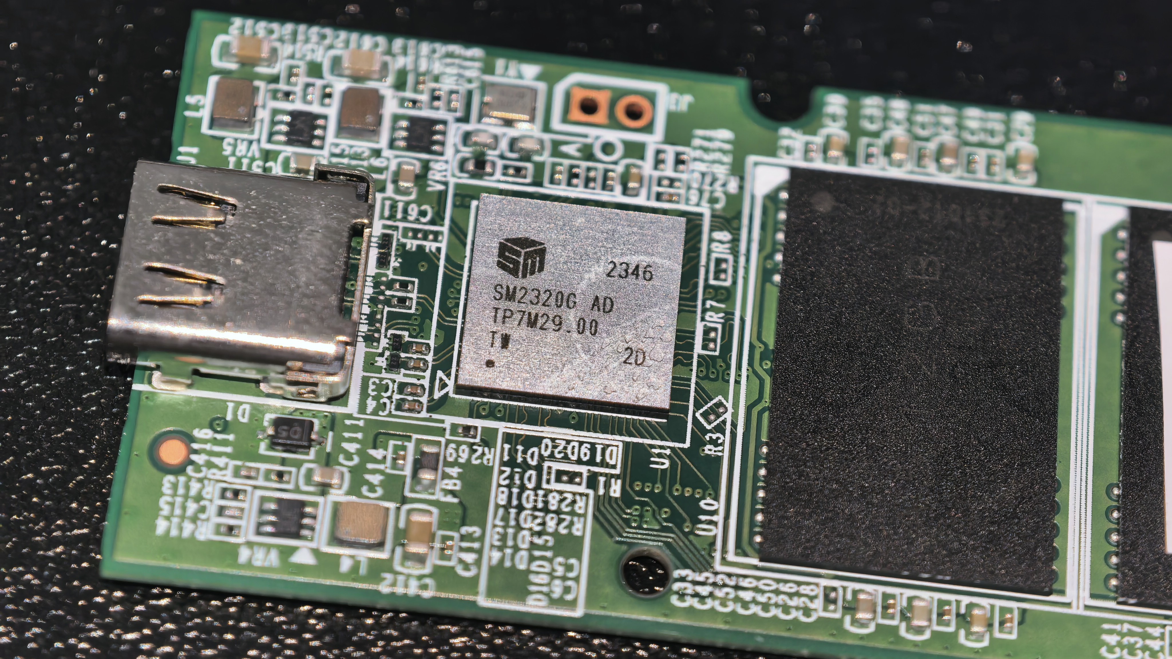 気を取り直して部品を確認します。コントローラーの刻印はSM2320G ADとあり、Silicon Motion SM2320です。